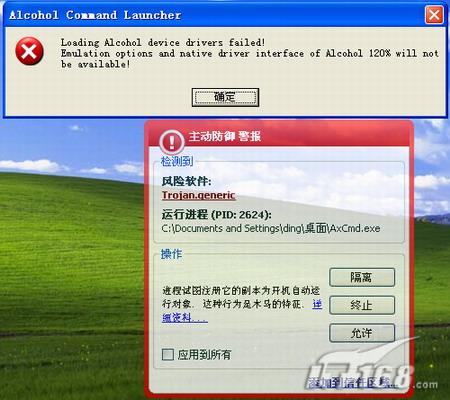 第一个熊猫病毒解压后,虽然扫描后没有发现病毒,但是一运行,卡巴斯基的主动防御模块就报警了!